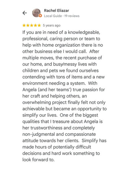 At Simplify Home Organizing, our team specializes in decluttering for people just like you, and downsizing for your aging parents.